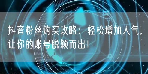 抖音作为当下最热门的社交媒体平台之一,拥有庞大的用户群体。在这个平台上,许多人都希望通过增加粉丝数量来提升自己的人气和影响力。本文将为你提供一份抖音粉丝购买攻略,帮助你轻松增加人气,让你的账号在抖音平台上脱颖而出。